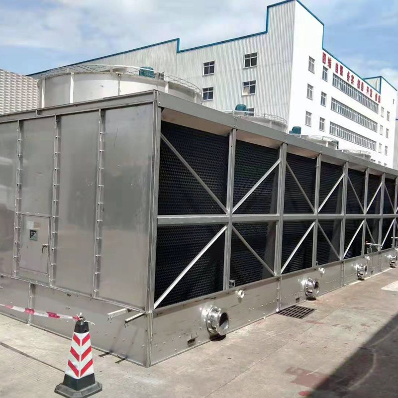 華創鋁業1000噸方形冷卻塔安裝現場圖,1000噸冷卻塔由2個200立方,2個300立方組成。