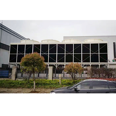 湖北世宜居建筑公司400噸方形冷卻塔安裝完畢,400噸方形冷卻塔由2個200噸方形冷卻塔并聯在一起。